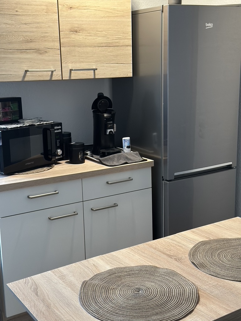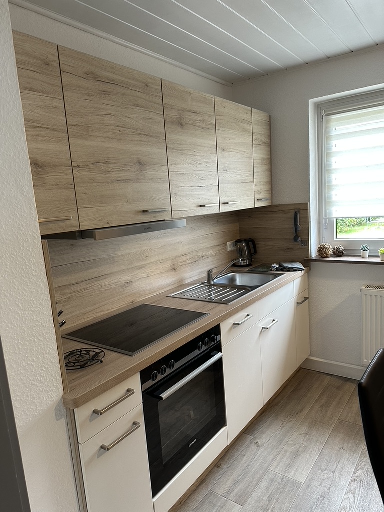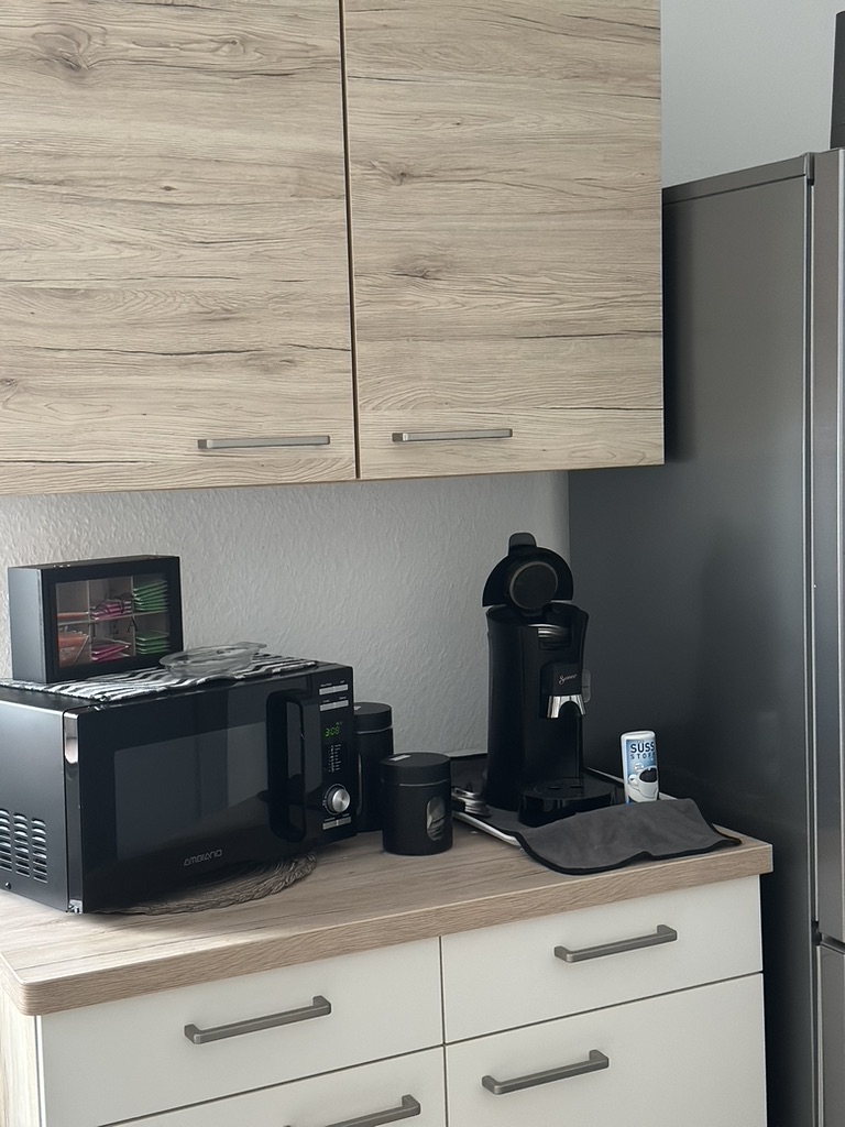 Backofen, Cerankochfeld, Besteck,Geschirr, Geschirrspüler, Kaffeemaschine, Geschirrtücher, Gewürze, Töpfe, Pfannen, Kühl/Gefrierkombination, Mikrowelle, Wasserkocher